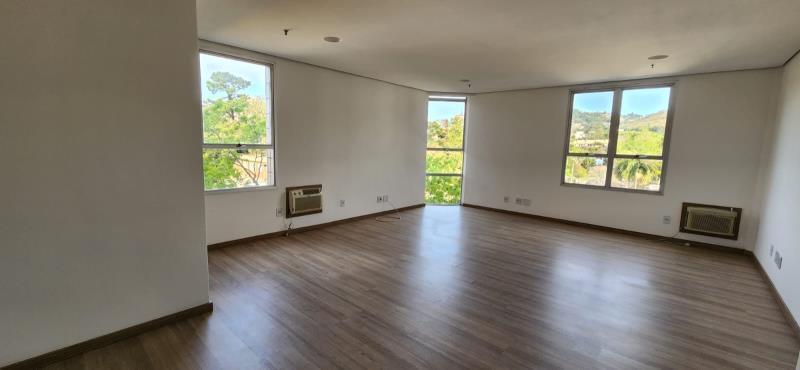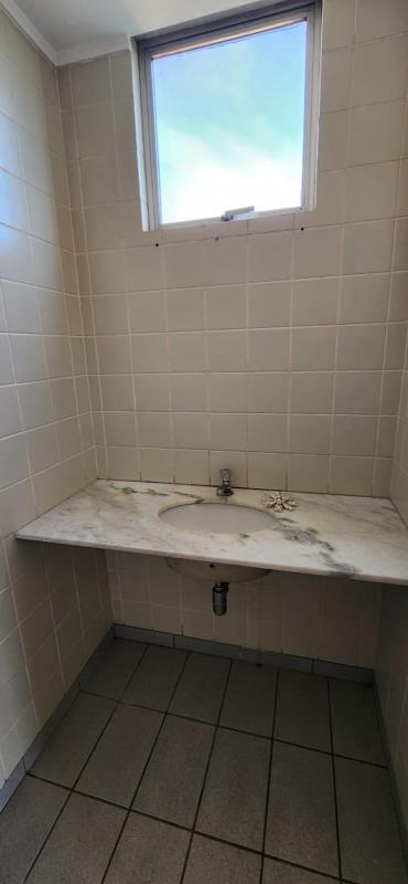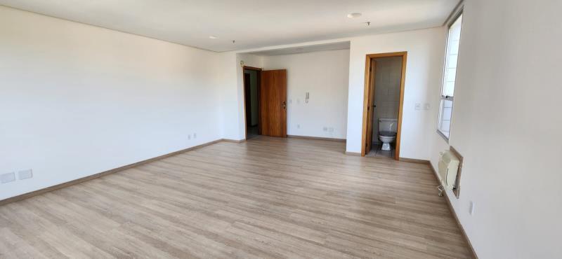 Sala comercial no quinto andar, de frente, medindo 40 m² de área útil com banheiro.